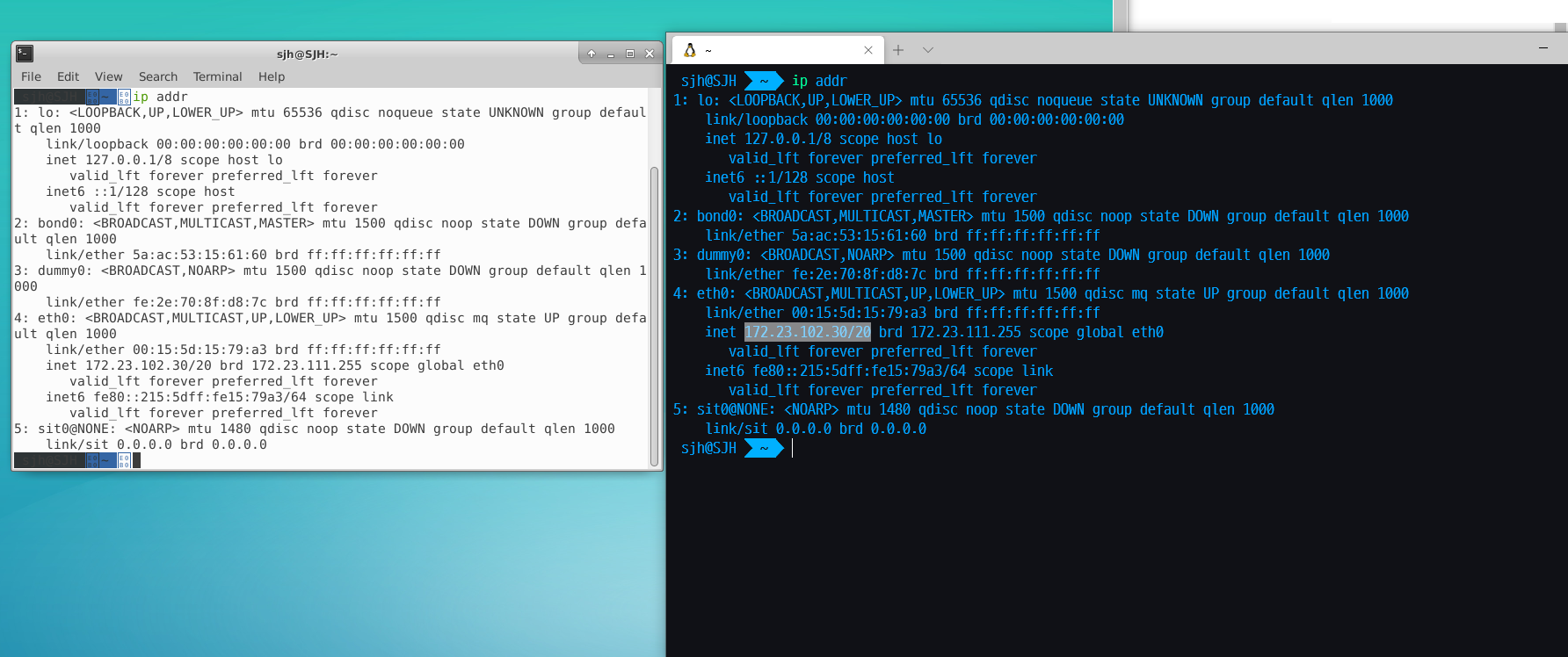 ip addr을 통해 확인해보면 같은환경에서 실행되고 있음을 알 수 있습니다!